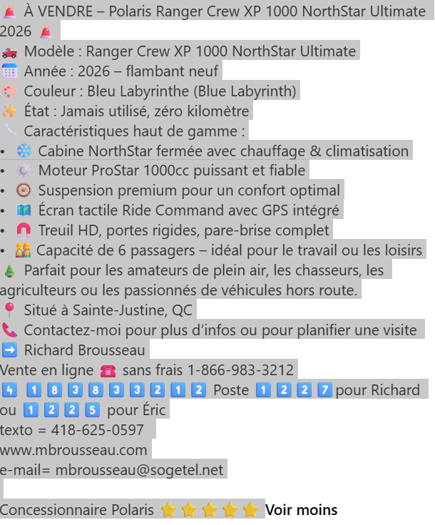 Polaris RANGER CREW XP 1000 NORTHSTAR ULTIMATE 2026
